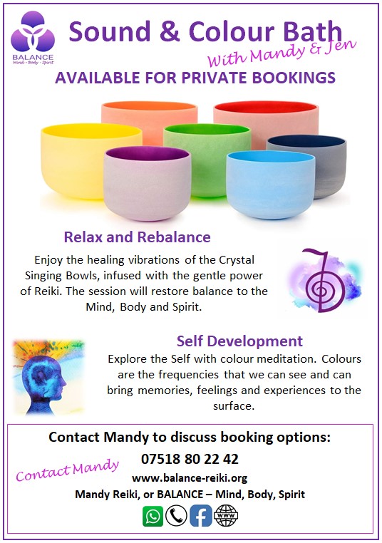 Crystal Singing Bowls, Colour Therapy and Reiki
